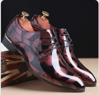 These elegant men’s dress shoes feature a glossy red-black gradient finish with subtle floral patterns that add a touch of luxury. Crafted with a sleek pointed toe and refined stitching, they offer a sophisticated, high-shine look perfect for formal events or stylish evenings out. The polished lace-up design and cushioned interior ensure both comfort and standout style.
